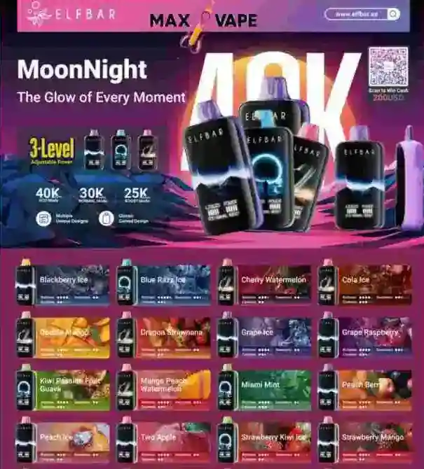 Elfbar Moonlight 40K Puffs Disposable Vape 50mg is designed for vapers who want long-lasting performance, rich flavor, and modern features in one device. With an impressive capacity of up to 40,000 puffs, this device offers extended use without the need for constant replacements.