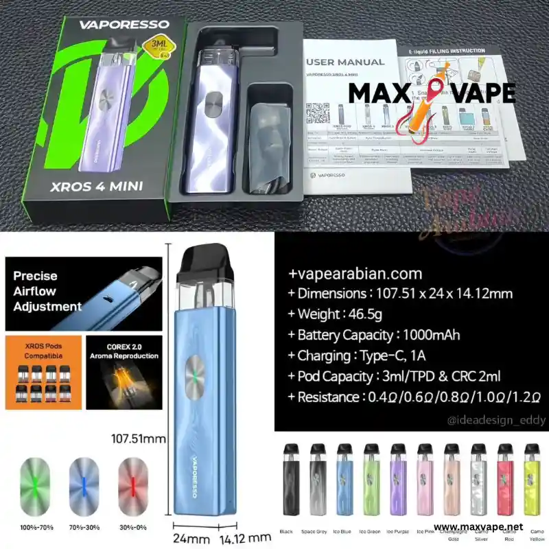 Upgrade your vaping experience with the new Vaporesso Xros 4 Mini Pod Kit, designed for convenience, durability, and maximum flavor. Available now at Maxvape, this compact device is perfect for beginners and experienced vapers looking for a simple yet high-performance pod system.
